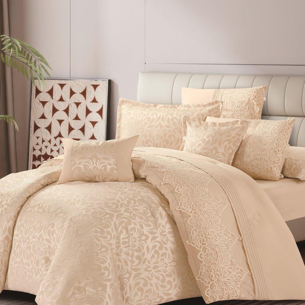يتميز مفرش برايد بأنه محاك بتقنيه الجاكار حيث تتداخل الخيوط مع بعضها بعدة طبقات لينتج رسومات مطرزة فاخرة وثابتة ، يتميز مفرش جاكار برايد بحشوة كبيرة وثابتة ونعومة وتنسيق الالوان تبعث لك الراحة والنوم الهانئ ذات تصميم جميل و فاخر تُناسب جمال البدايات و يحتفظ برونقه و جماله مصنوع من أجمل و أجود أنواع الأقمشة التي تدوم لسنواتٍ طويلة دون أن تهترئ