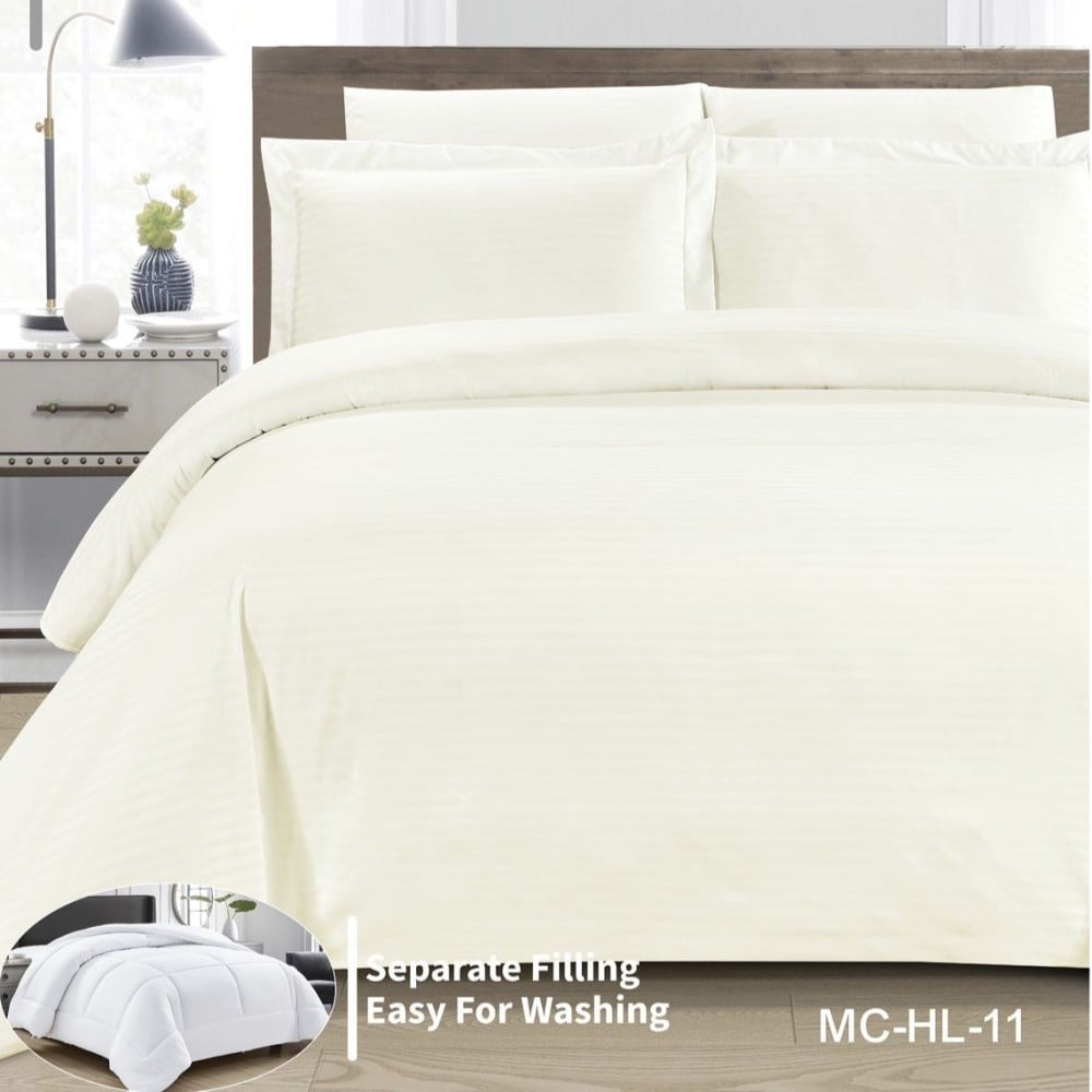 مفرش بطابع فندقي راقي وفاخر وذا ملمس ناعم مقلم بخطوط طولية عريضه .