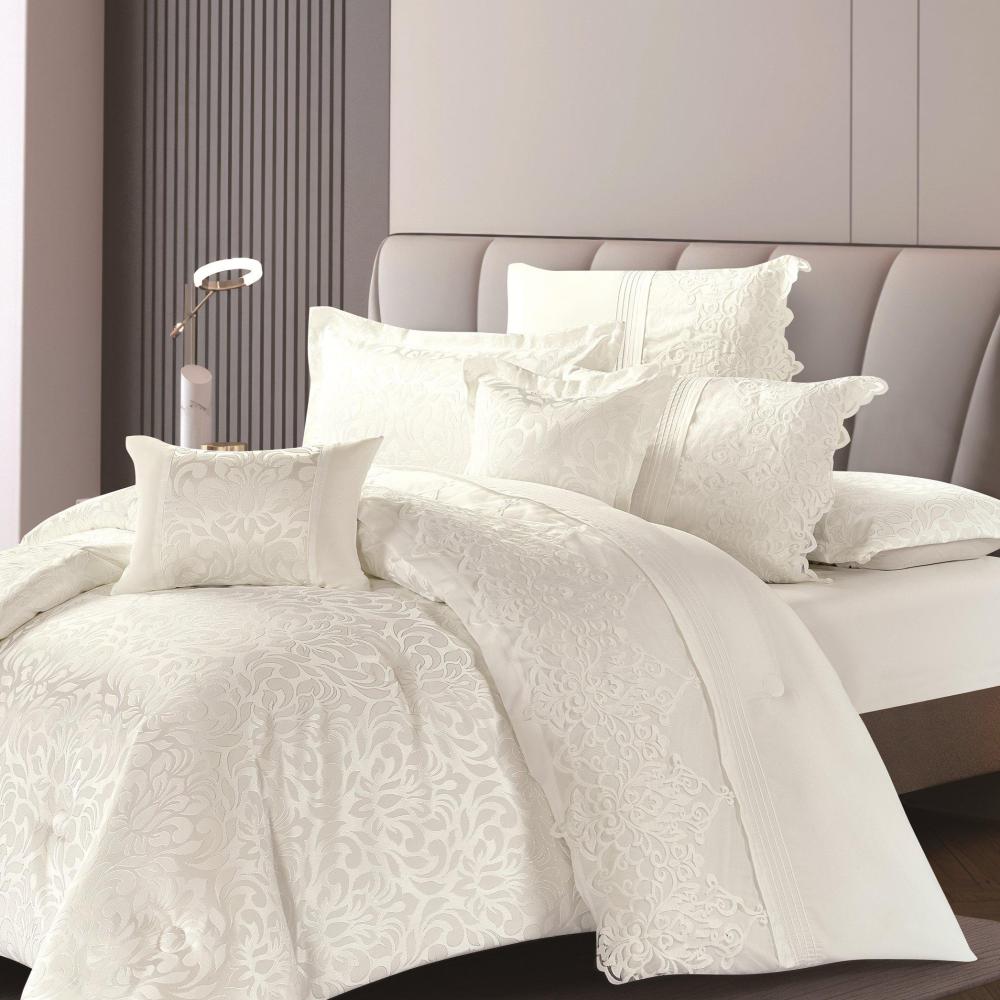 يتميز مفرش برايد بأنه محاك بتقنيه الجاكار حيث تتداخل الخيوط مع بعضها بعدة طبقات لينتج رسومات مطرزة فاخرة وثابتة ، يتميز مفرش جاكار برايد بحشوة كبيرة وثابتة ونعومة وتنسيق الالوان تبعث لك الراحة والنوم الهانئ ذات تصميم جميل و فاخر تُناسب جمال البدايات و يحتفظ برونقه و جماله مصنوع من أجمل و أجود أنواع الأقمشة التي تدوم لسنواتٍ طويلة دون أن تهترئ