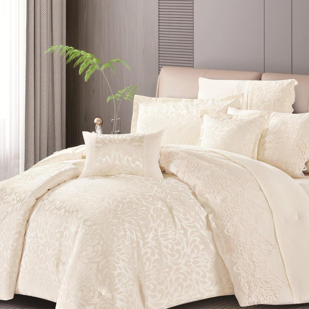 يتميز مفرش برايد بأنه محاك بتقنيه الجاكار حيث تتداخل الخيوط مع بعضها بعدة طبقات لينتج رسومات مطرزة فاخرة وثابتة ، يتميز مفرش جاكار برايد بحشوة كبيرة وثابتة ونعومة وتنسيق الالوان تبعث لك الراحة والنوم الهانئ ذات تصميم جميل و فاخر تُناسب جمال البدايات و يحتفظ برونقه و جماله مصنوع من أجمل و أجود أنواع الأقمشة التي تدوم لسنواتٍ طويلة دون أن تهترئ