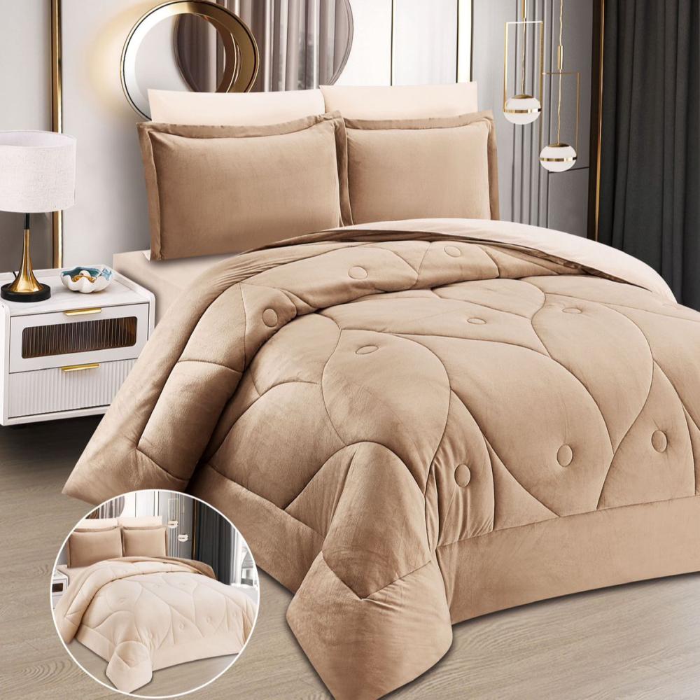 مفرش مخمل شتوي روزي مزدوج 6 قطع