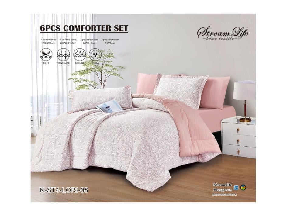يأتي المفرش بألوان صيفية جذابة تنبض بالحياة، مما يجعله مثاليًا لمن يحبون التجديد وإضافة لمسات منعشة إلى ديكورهم. مصنوع من خامة خفيفة وناعمة جدًا، تمنحك إحساسًا بالراحة والانتعاش طوال الليل، خاصة في الأجواء الدافئة.